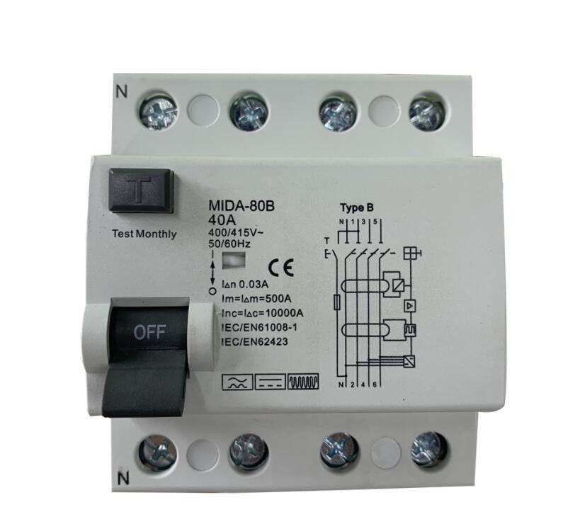 40A 4 막대기 30mA B형 행동 양식 10KA 잔류전류 RCD 회로 차단기